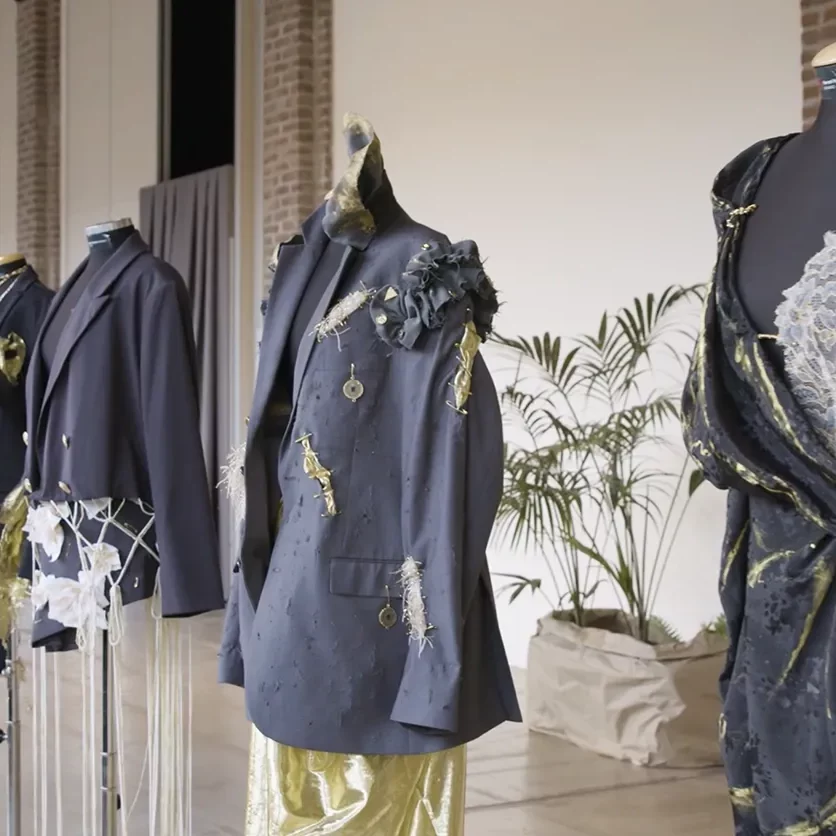 “The garments were created […], drawing inspiration from the technique of Kintsugi, the Japanese art of repairing broken objects with gold,” explained Anna Lottersberger, Director of Ferrari Fashion School – Plena Education Group. “Each piece thus becomes a symbol of renewal, an icon to be worn with strength and pride to convey a simple yet fundamental message: every wound can be healed, every story can begin again.”